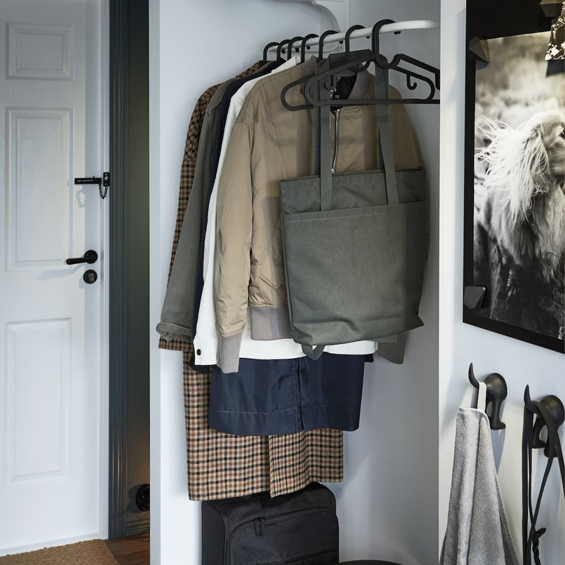 چوب لباسی ایکیا مدل SPRUTTIG یک چوب لباسی بسیار مقاوم و با طراحی کاربردی است که در کارخانه ایکیا در ایتالیا تولید می شود. جنس این محصول از پلیمر PP می باشد که با الیاف شیشه کامپوزیت شده است. در نتیجه استحکام بسیار بالایی را رقم می زند. طراحی زیبا و کاربردی این محصول باعث شده تا بتوانید هر مدل لباس زنانه یا مردانه، کیف و کروات را به آن آویزان کنید. این محصول در بسته بندی 10 عددی عرضه می گردد.